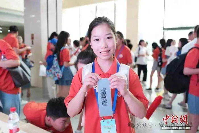 7月19日,第八届全球华语朗诵大赛河南集结营在安阳博物馆开营。来自葡萄牙、加拿大、西班牙、澳大利亚、缅甸、英国、德国等7个国家的38名师生赴豫参访交流。开营当日,海外华裔青少年在安阳博物馆体验拓印技艺,和当地学生分享成长故事。图为海外华裔青少年排队等待制作丝网书签的作品。连晨宇 摄