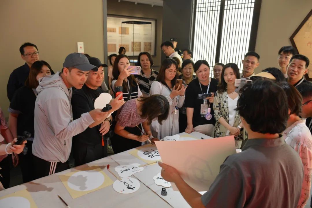 最热闹的当属甲骨文书画互动区。在专业书法家的指导下,台胞们提笔蘸墨,于素笺之上尝试书写古老的甲骨文字,指尖笔墨流转间,仿佛完成了一场跨越三千年的时空对话。从事教育自媒体的陈双卯在体验后补充道:“从小听仓颉造字的故事,今天亲手写甲骨文,才算真正摸到了文化的根。”