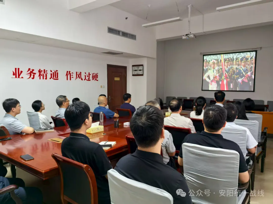 9月3日上午,安阳市委统战部机关全体党员干部齐聚会议室,共同观看纪念中国人民抗日战争暨世界反法西斯战争胜利80周年大会。