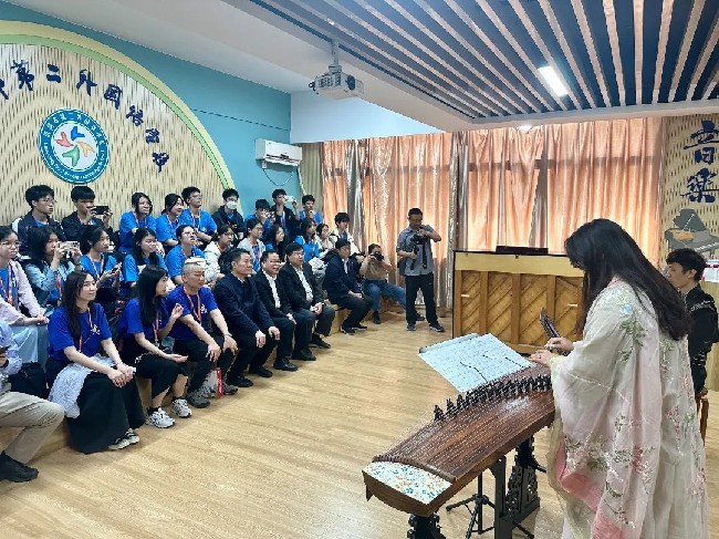当日,30余名来自香港黄棣珊纪念中学的师生走进洛阳二外,沉浸式感受优美的育人环境与浓厚的校园文化,欣赏由该校学生带来的舞龙舞狮、武术表演,亲身感受埙、古筝、编钟等中国古典乐器的魅力。