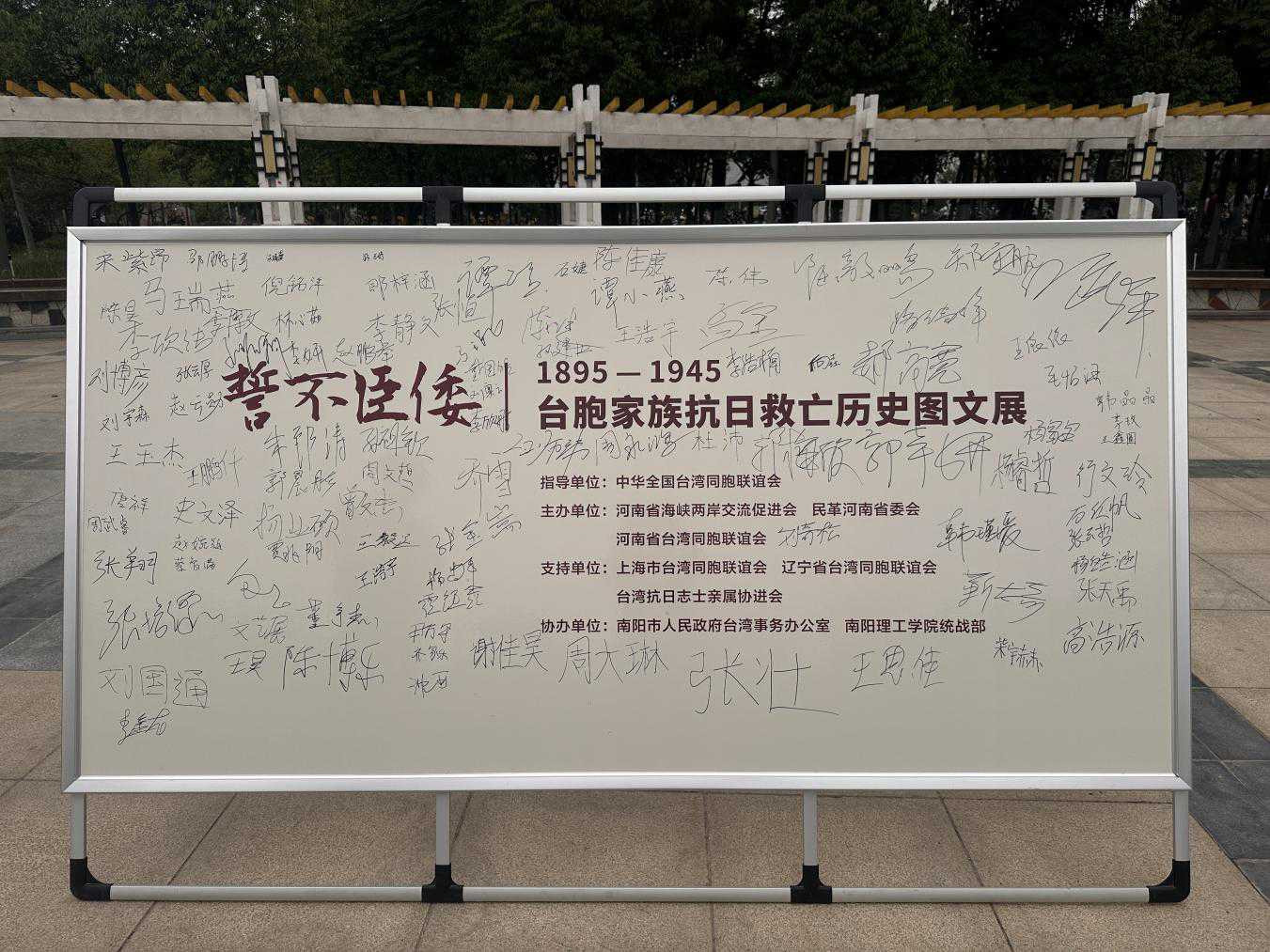 活动期间,市委统战部精心制作了宣传展板,涵盖了台湾的历史变迁、文化传承、风土人情以及当前两岸关系的现状等多方面内容,并在台湾光复80周年这一重要历史节点,特别开展了“誓不臣倭——台胞家族抗日救亡历史图文展”,生动展现了台胞家族在抗日救亡运动中不屈不挠的斗争精神和深厚的爱国情怀。活动吸引了300余名师生,并纷纷在签名墙上郑重签名,表达自己维护国家统一、促进两岸交流合作的坚定决心。
