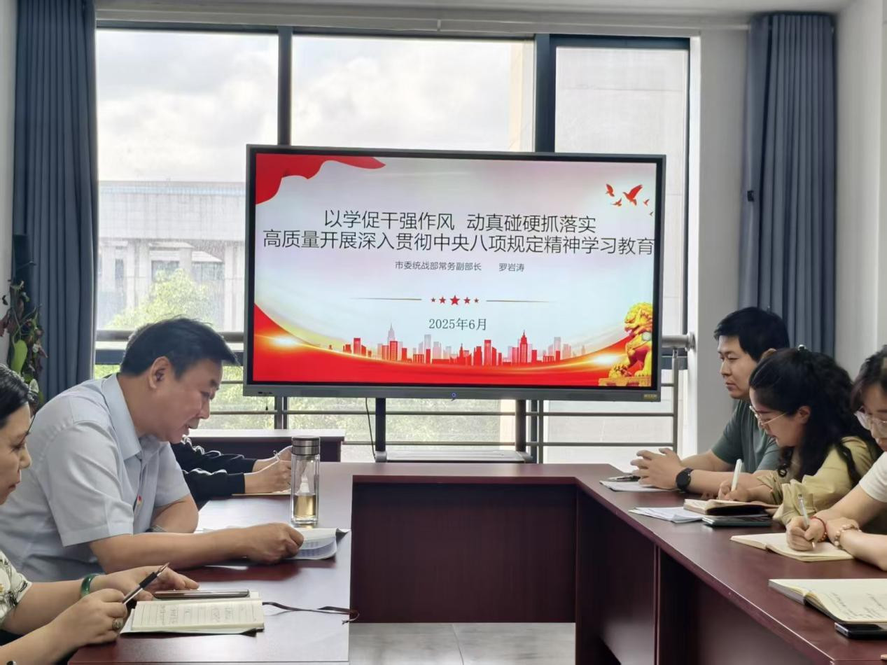 6月26日,为深入贯彻中央八项规定精神学习教育,进一步加强纪律作风建设,市委统战部常务副部长罗岩涛以《以学促干强作风 动真碰硬抓落实 高质量开展深入贯彻中央八项规定精神学习教育》为题,为部机关第二党支部全体党员讲授专题党课。