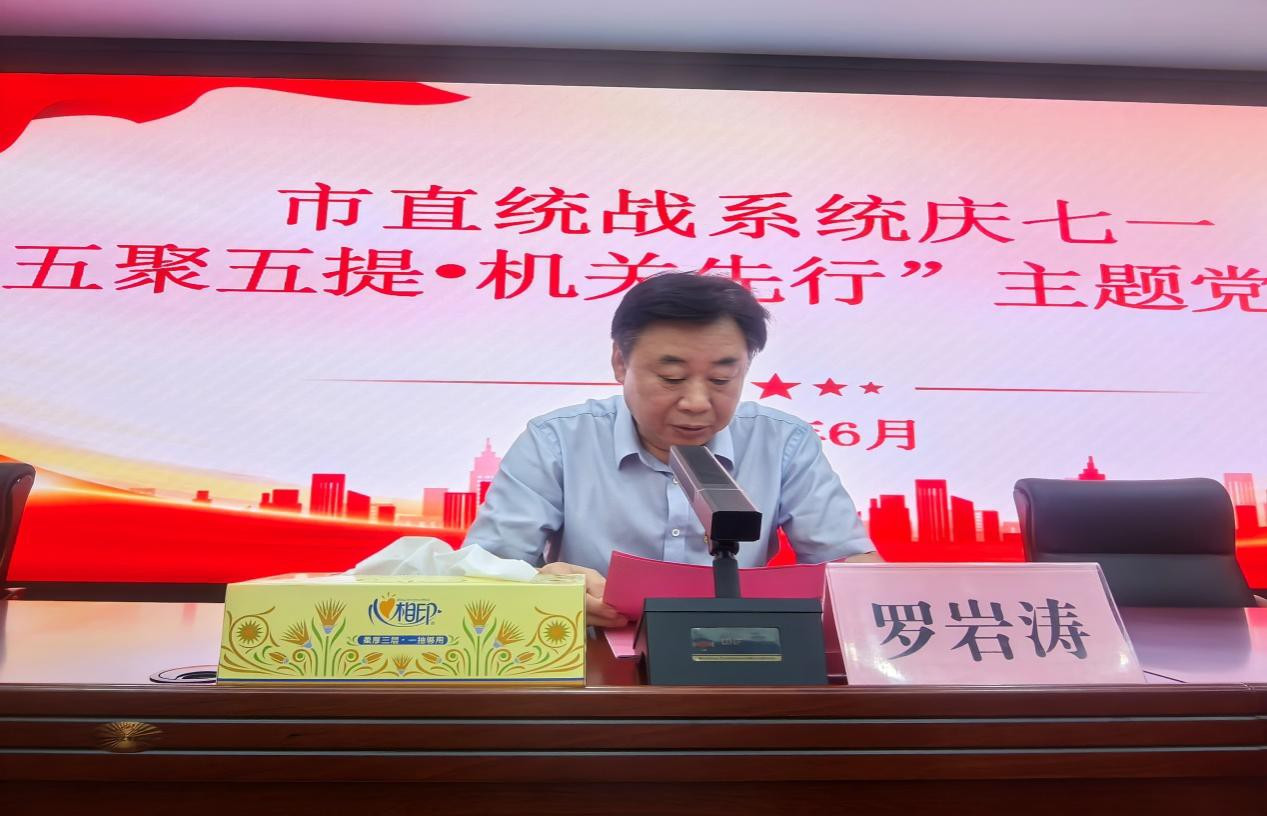 6月26日,在庆祝中国共产党成立104周年之际,市委统战部组织开展市直统战系统庆七一“五聚五提・机关先行”主题党日活动。市委统战部常务副部长、机关党委书记罗岩涛同志参加活动并致辞,一级调研员王峰主持活动。