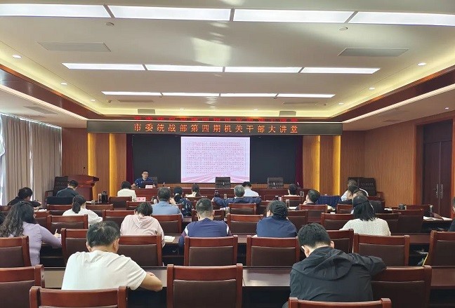 10月16日下午,市委统战部第四期“机关干部大讲堂”开讲,部领导罗岩涛、李冠彧、任平、李贞、贾志杰、陈伟、和市爱国统一战线服务中心主任项宁出席,市委统战部机关、市侨联、市爱国统一战线服务中心全体干部参加。