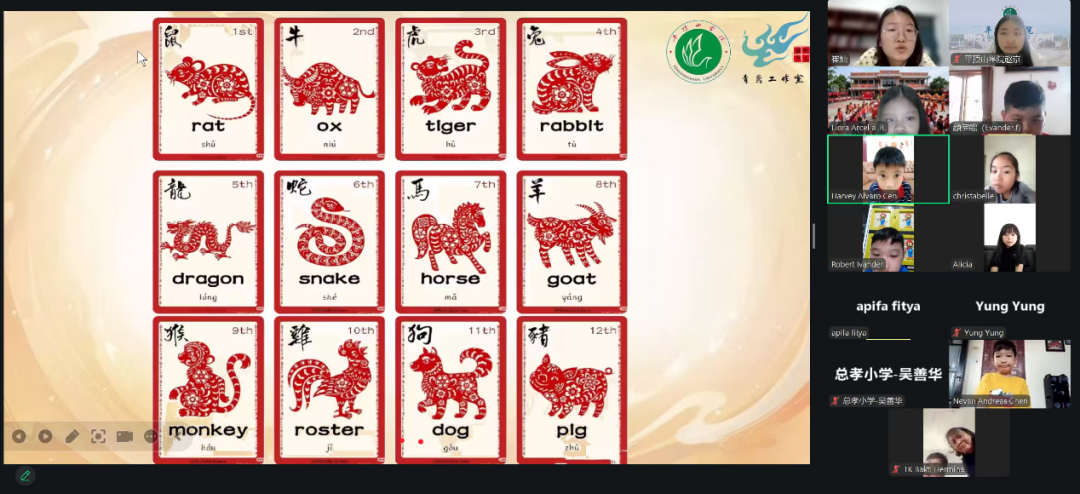 本学期为备战第九届全球华语朗诵大赛,团队专门面向美国学习者精准设计了华语朗诵课程。志愿者教师根据大赛要求,围绕朗诵语言、朗诵效果、主题内容、演讲技巧等展开教学,为参赛选手量身选择了兼具隽永诗意和良好朗诵效果的三苏诗词,开展“集体指导+一对一指导”教学,实现了学习者演讲能力提高和诗词文化浸润的双丰收。教学团队为印尼五所华校七个班级开设了中文口语课,他们结合儿童认知特点,将中国十二生肖、中国春节习俗等文化内容融入课堂,通过情景对话、动画演示、图片放映等趣味形式教授基础中文口语,让印尼各地区的幼儿在快乐学习中感受中国民俗的独特魅力。