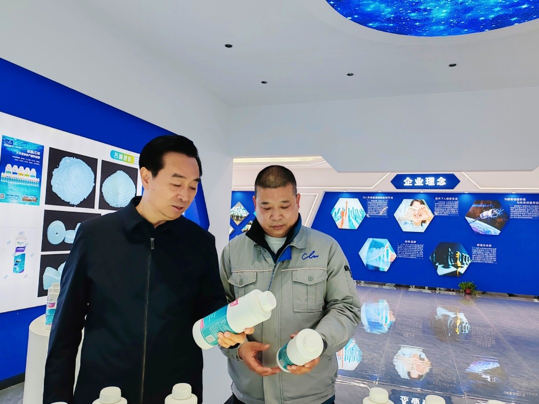 走进位于可利威北厂区门口的产品展厅,除了企业发展史、企业荣誉和理念、未来展望等的介绍,最多的就是种类众多的各类产品了,大多数是瓶装的,有液体的,也有片状的。“这个是用来清洗游泳池的,那个是家庭用的。这些产品是为日本客户定做的,那些产品是出口到法国和意大利的……”拿起一个个瓶瓶罐罐,张伟中如数家珍地向记者介绍。