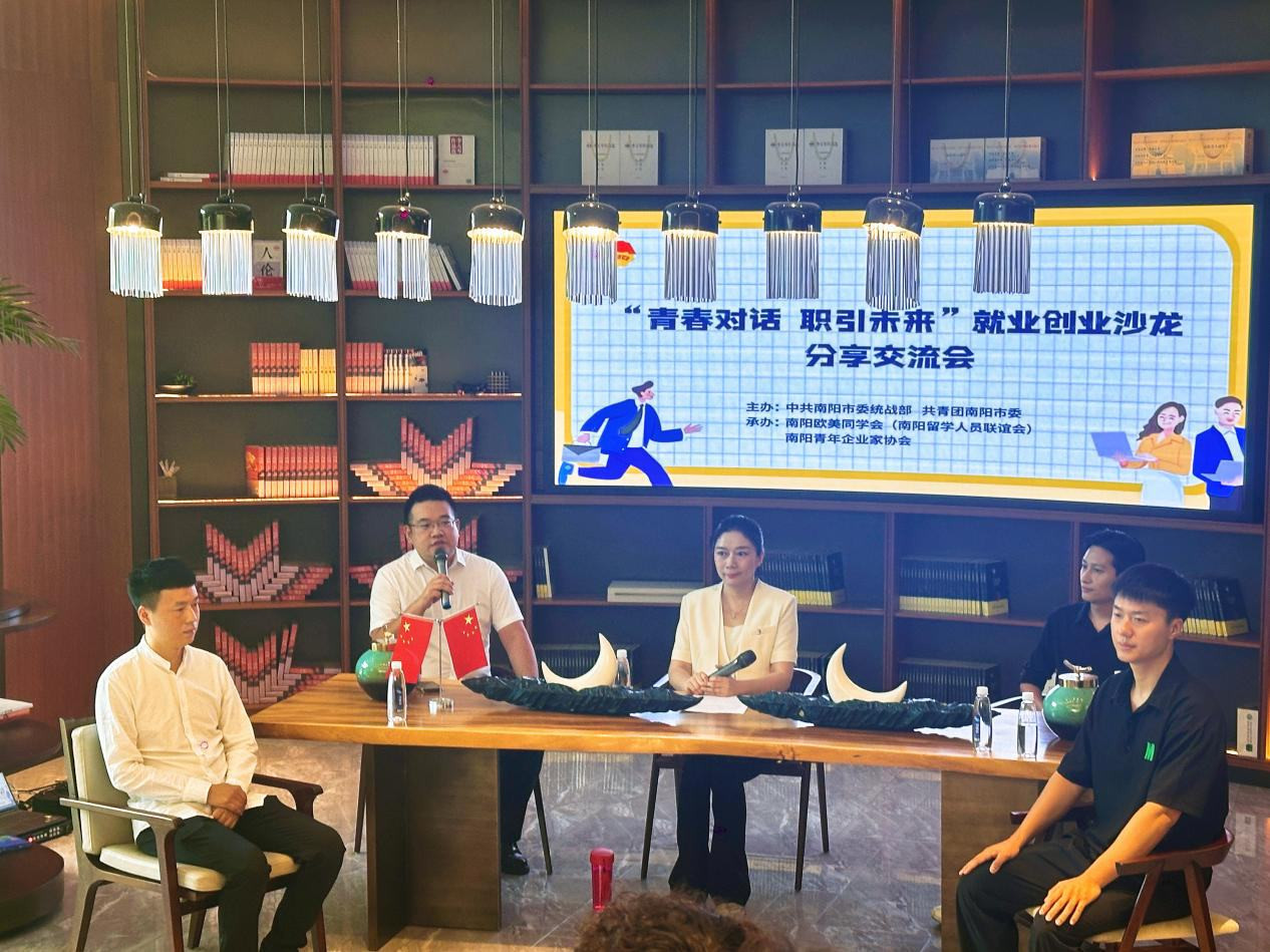 8月4日,由南阳市委统战部、共青团南阳市委主办,南阳欧美同学会(南阳留学人员联谊会)、南阳青年企业家协会承办的“青春对话 职引未来”就业创业沙龙分享交流会成功举行。市委统战部副部长、市侨办主任李冠彧,团市委书记李冬冬、副书记林丽出席。留学生代表、返乡大学生代表、青年企业家代表等50余人参加。