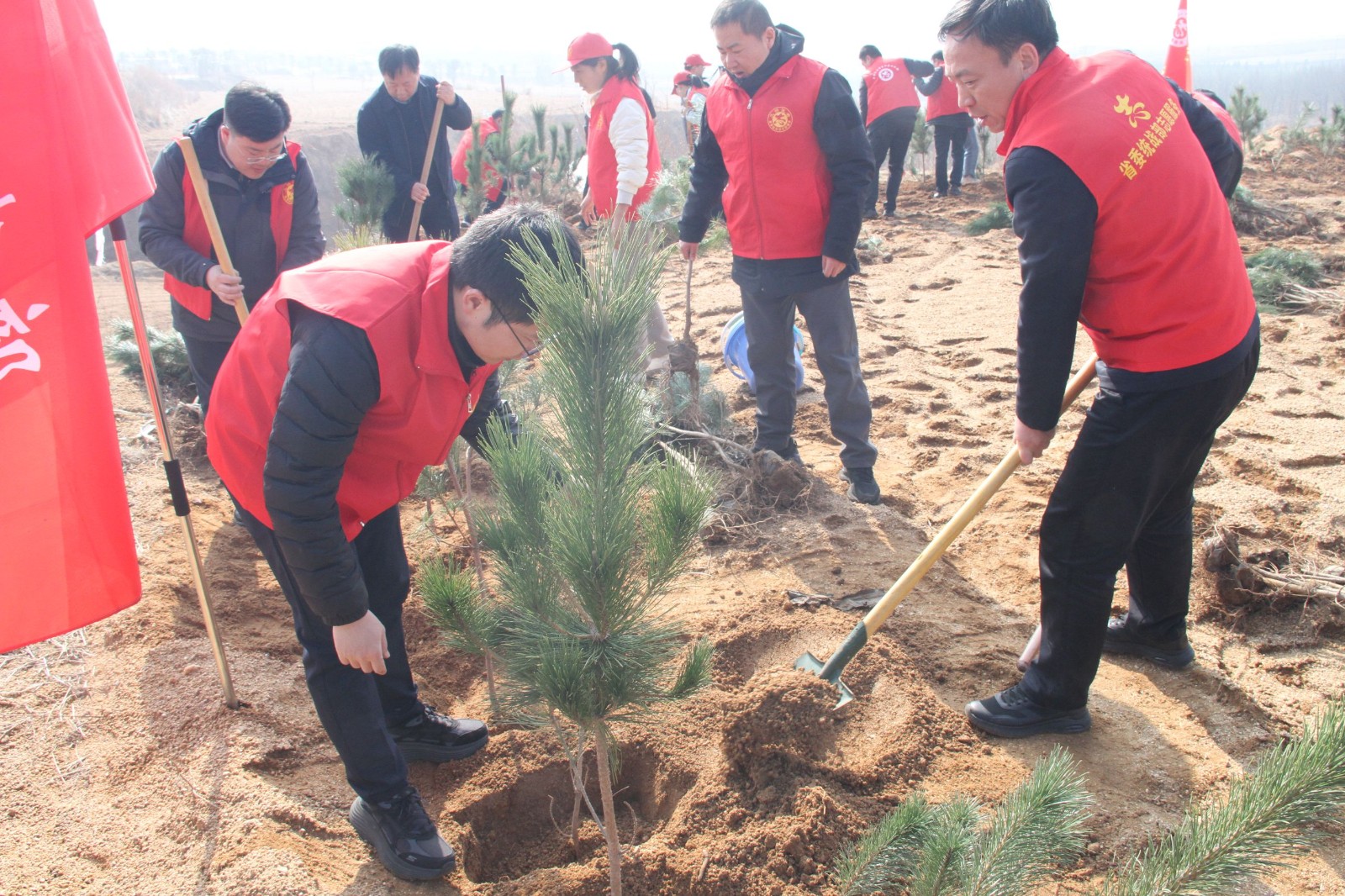 在郑州市全民义务植树基地活动现场,一派热火朝天的繁忙景象。大家在现场工作人员的指导下,分工协作、默契配合,挥锹挖坑、扶苗正干、培土压实、提水浇灌,严格按照栽植要求规范细致完成每一道工序。陈照顺副部长与大家一同劳作,指导苗木种植要点,交流养护知识。经过大家协力合作,共栽植松树苗木60余棵。一株株新苗整齐挺立、迎风吐翠,为春日大地增添勃勃生机,也播撒下绿色发展、生态宜居的美好希望。