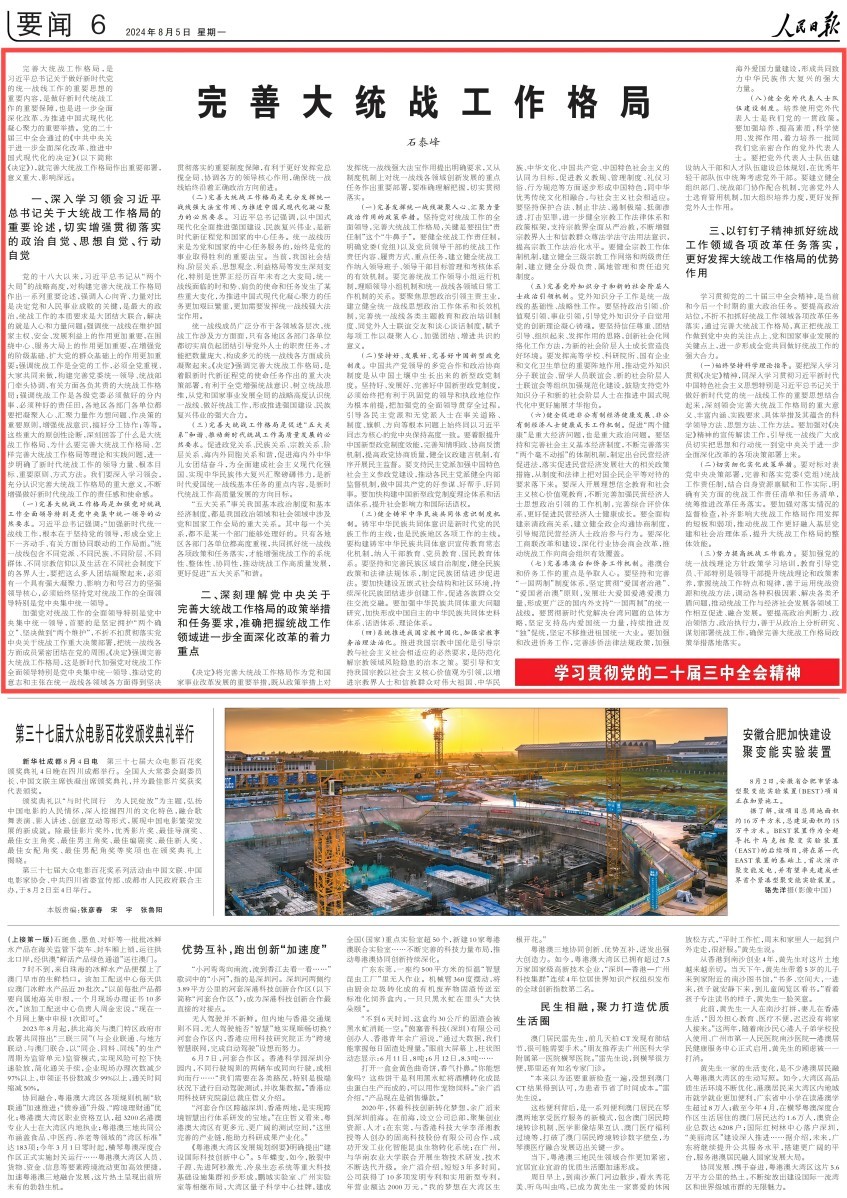 学习贯彻党的二十届三中全会精神,是当前和今后一个时期的重大政治任务。要提高政治站位,不折不扣抓好统战工作领域各项改革任务落实,通过完善大统战工作格局,真正把统战工作做到党中央的关注点上、党和国家事业发展的关键点上,进一步形成全党共同做好统战工作的强大合力。