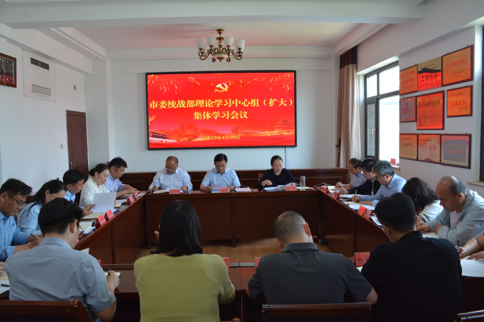 4月28日,市委统战部理论学习中心组(扩大)举行集体学习研讨,传达学习习近平总书记近期重要讲话、重要文章和有关文件精神,深入学习习近平总书记关于加强党的作风建设的重要论述,交流学习体会。市委统战部副部长申古今主持并讲话。