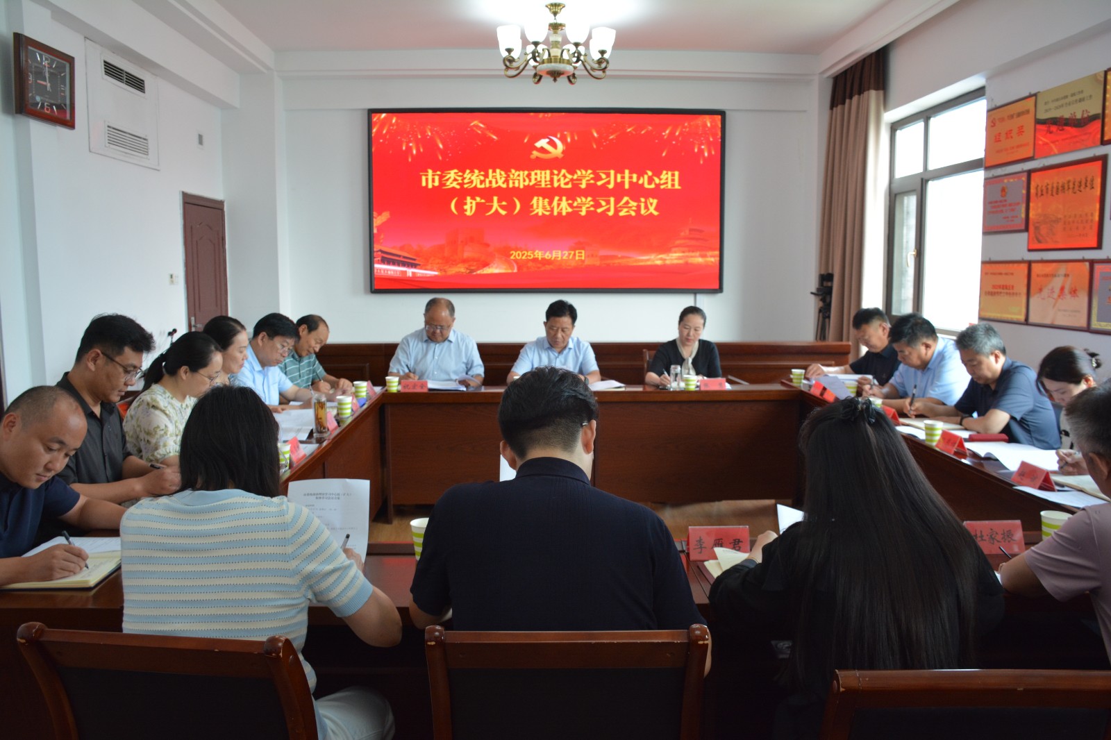 6月27日,市委统战部理论学习中心组(扩大)举行集体学习研讨,认真学习党的十八大以来深入贯彻中央八项规定精神的成效和经验,交流学习体会,推动学习教育不断走向深入。市委统战部副部长申古今主持并讲话。