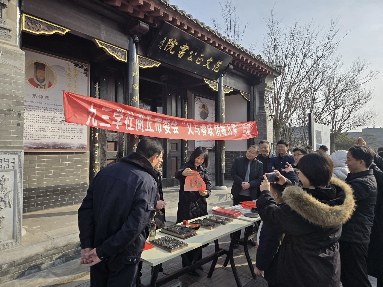 适逢立春,年味渐浓。为弘扬中华优秀传统文化,营造祥和喜庆的节日氛围,2月4日,九三学社商丘市委会于商丘古城东门范文正公书院,举办 “义写春联 情暖万家” 新春惠民活动。九三学社商丘市委会主委、商丘市政府副市长王爱林出席活动。