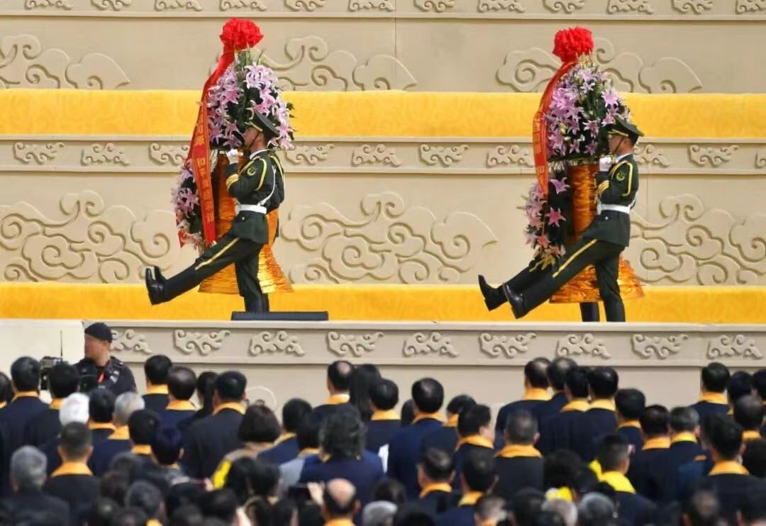 盛世礼炮。全体肃立。鸣炮21响。