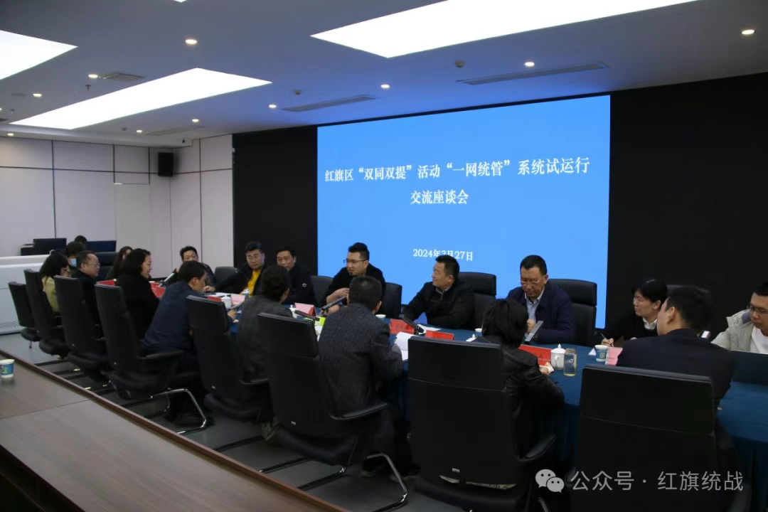 3月27日,区委常委、统战部部长郭琴主持召开“双同双提”活动“一网统管”系统试运行交流座谈会,区委统战部、区政数局相关负责同志,企业代表、技术方代表参加会议。