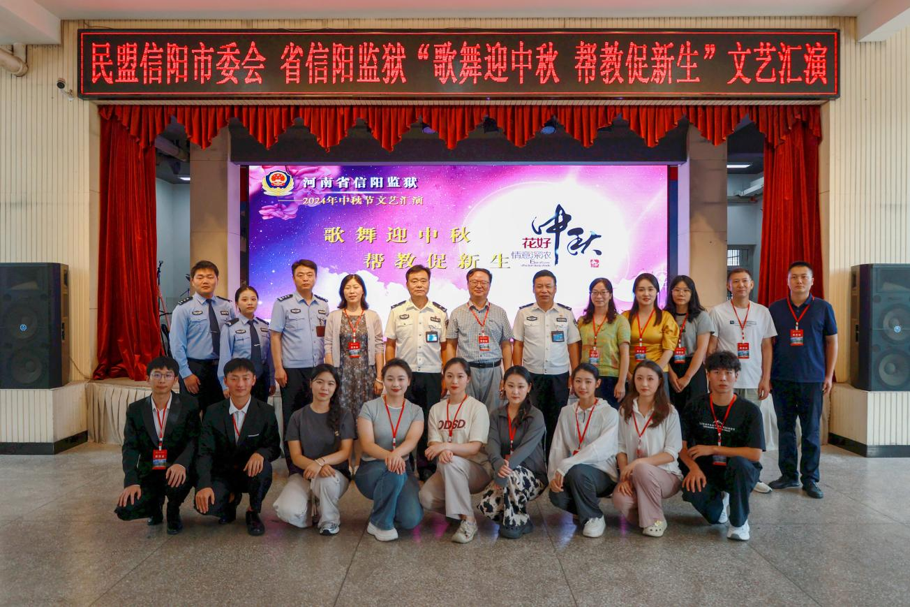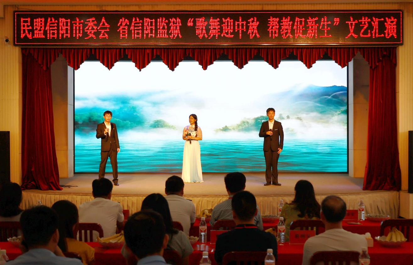 仲秋狱苑,丹桂飘香。9月9日,民盟信阳市委会联合省信阳监狱在河南省信阳监狱文化大厅举办“歌舞迎中秋 帮教促新生”文艺汇演活动。整场演出主题鲜明、精彩纷呈,引发现场观众阵阵热烈掌声,取得圆满成功。民盟信阳市委会主委宋进良、副主委王玲玲,省信阳监狱监狱长、分管监狱领导、相关科室负责人出席活动。