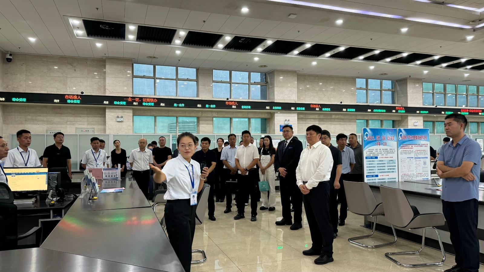 许红兵与企业家代表共同参加市市场监督管理局办事服务开放日活动,参观涉企办事流程,了解相关涉企政策。