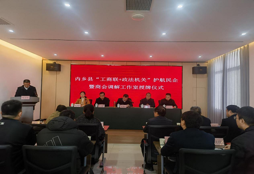 12月5日,内乡县举行“工商联+政法机关”护航民企暨商会调解工作室授牌仪式,内乡县委常委、统战部部长张国涛出席仪式并讲话。
