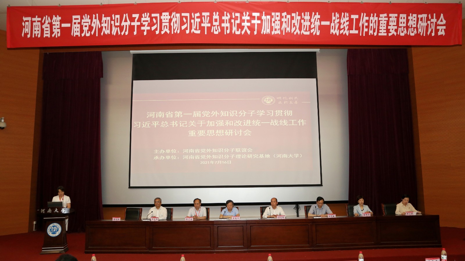 为深入学习贯彻习近平总书记“七一”重要讲话精神,回顾总结统一战线百年光辉历程,推动新时代统一战线工作理论创新,7月16日,河南省第一届党外知识分子学习贯彻习近平总书记关于加强和改进统一战线工作的重要思想研讨会在河南大学隆重召开。省党外知识分子联谊会会长、省政协副主席、民革省委主委李英杰出席会议并致辞。省委统战部副部长梁险峰、省委高校工委专职委员何秀敏、河南大学党委书记卢克平分别进行致辞。