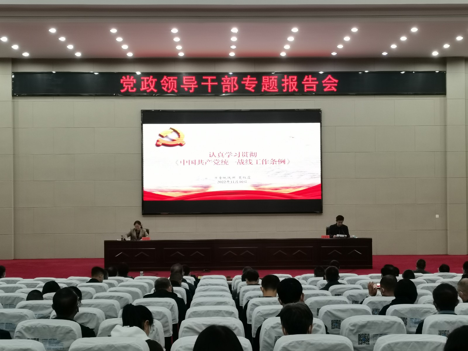 11月10日,鹤壁市委统战部常务副部长莫红霞到市委党校宣讲《中国共产党统一战线工作条例》,2022年秋季学期主体班190余名学员参加。